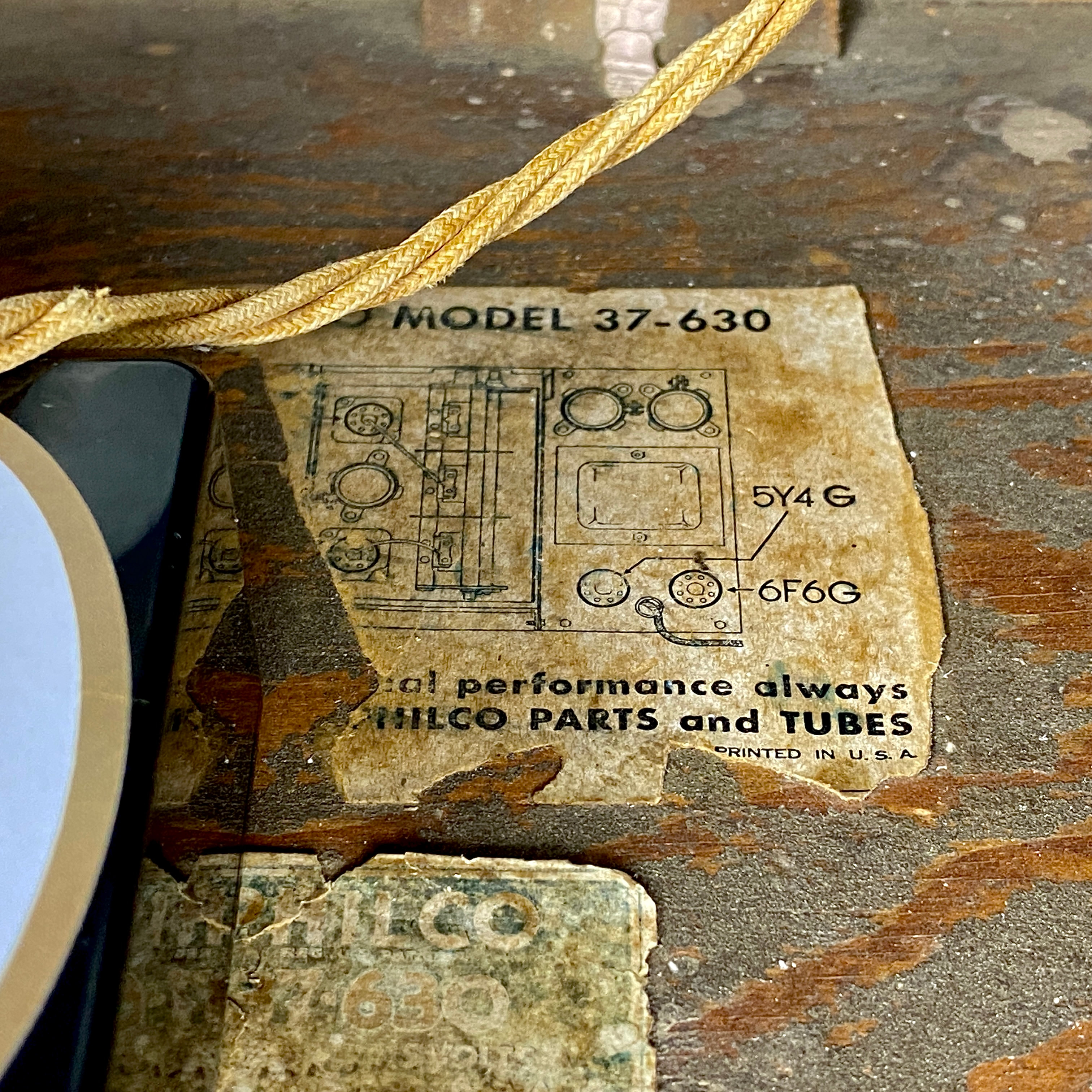 History - This model first appeared in the fall of 1936 and sold for USD $63.00. Philco’s 1937 630 series had two distinct models with different cabinet styles – this one and a console floor model. The chassis is also similar in design to that used in the previous model 630 series (1935-36). This model 630T is the tabletop version with a speaker opening with several horizontal bars in the upper half, somewhat resembling a small Greek 'sigma.' There were only 13,689 of these units made.