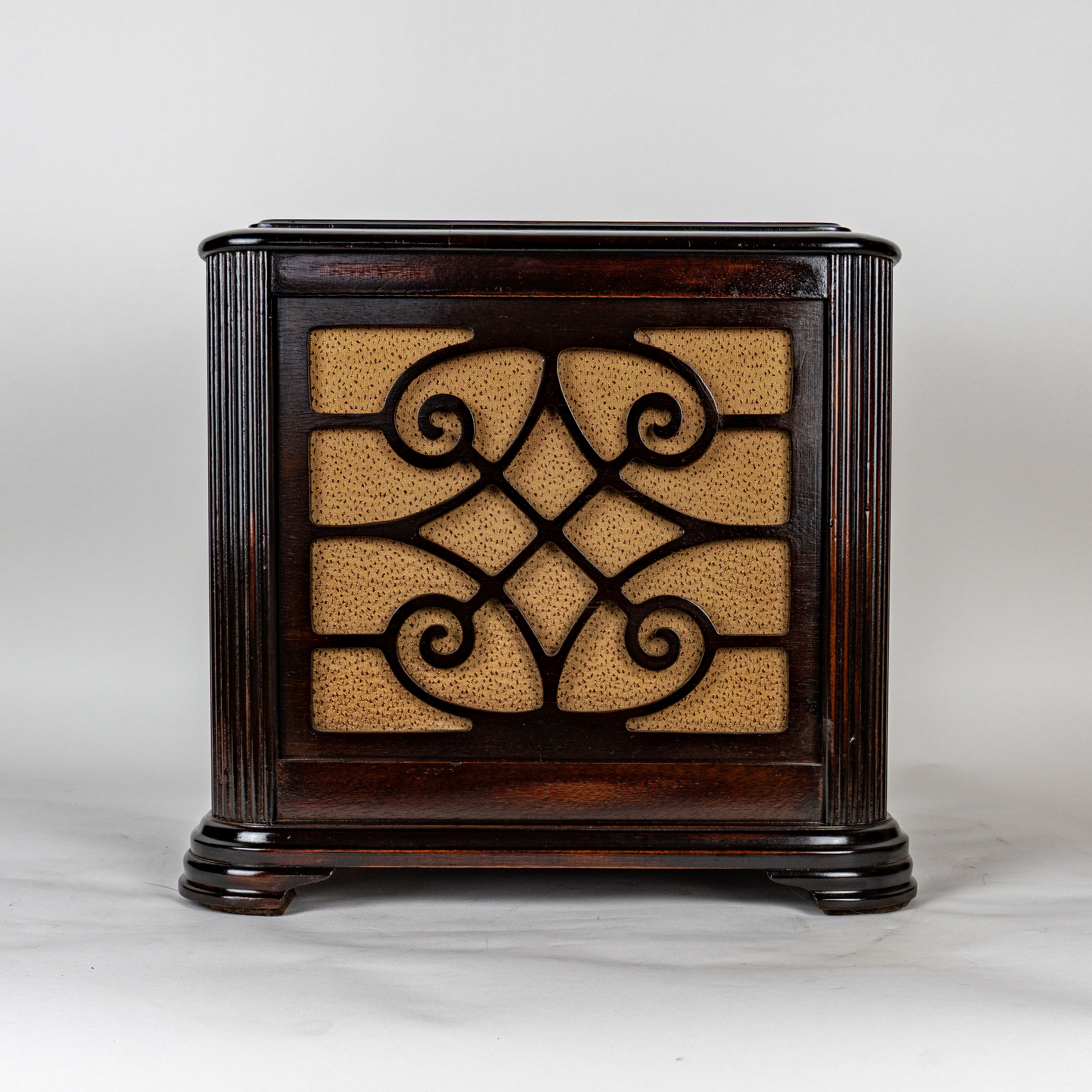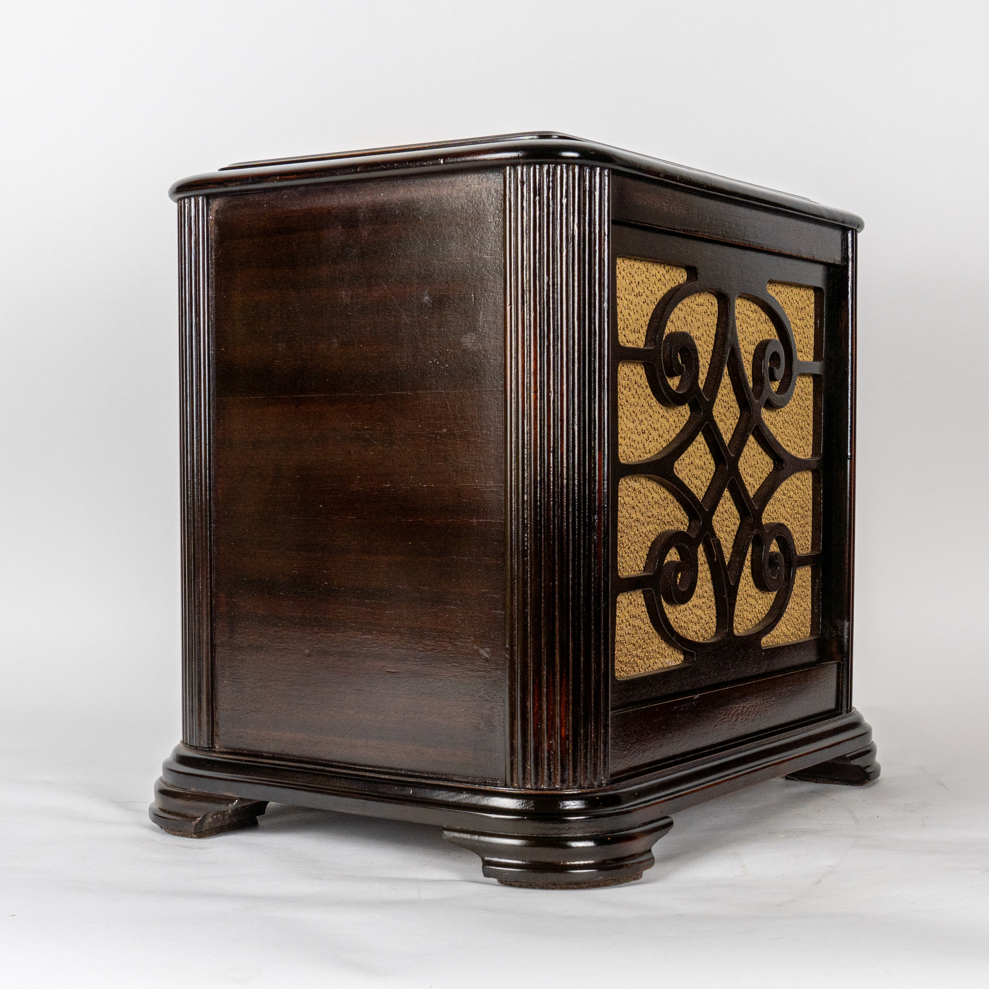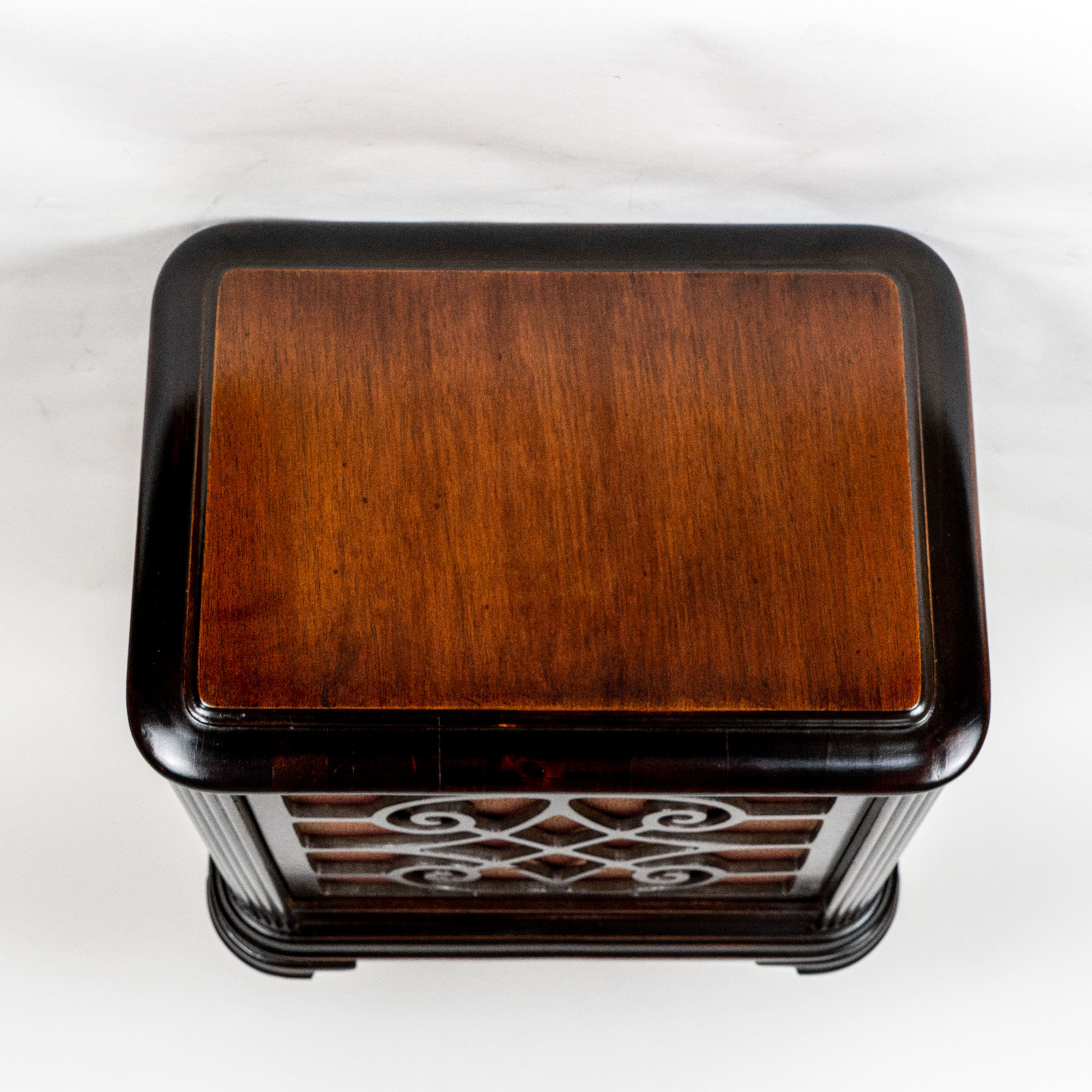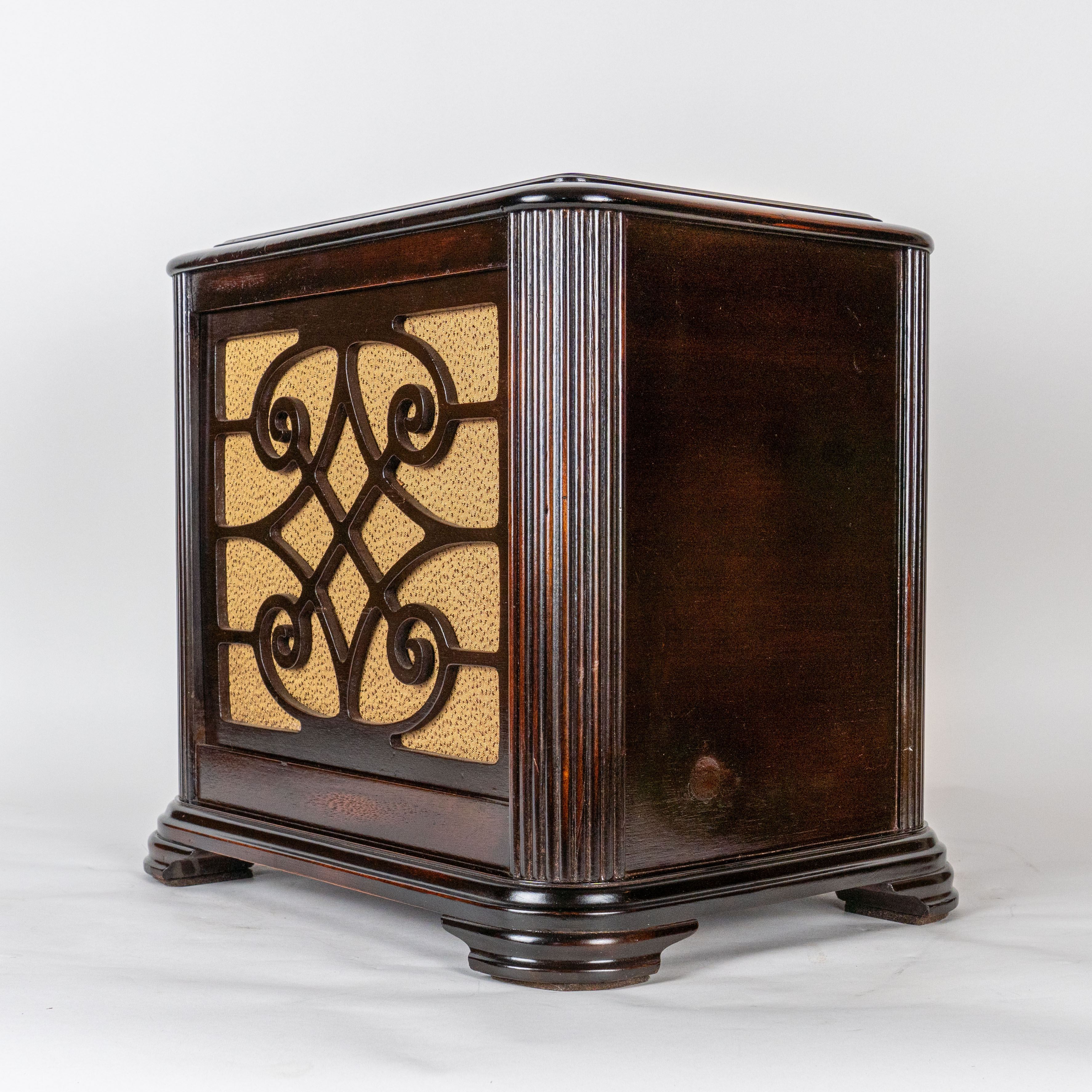 The antique design, with its use of scrolled speaker grill is exquisite. These were originally produced as external "add-on" speakers for vintage 1920's radios. We matched the original 10 inch speaker with a new one and added a 50-watt solid state amplifier and wireless Bluetooth input. It has a volume control on the back and you can control the volume with your smartphone. You'll love the unique vintage sound!